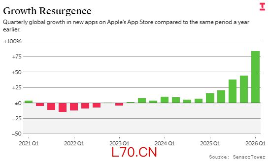 新应用多年增长停滞之后,氛围编程工具很可能是此次大幅激增的幕后推手。