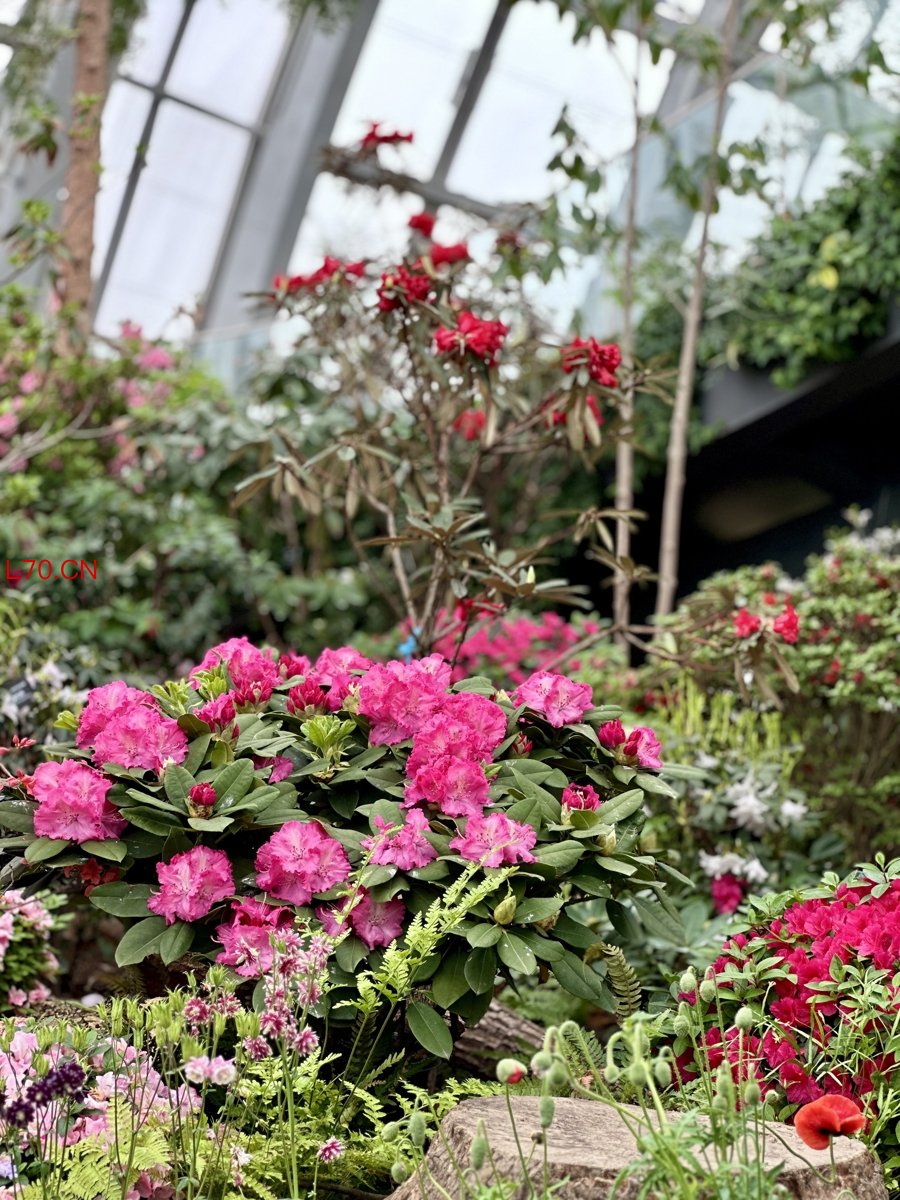 新民晚报记者在亚高山植物馆看到,园内已打造出一片高坡“花瀑”,模拟落叶杜鹃、云锦杜鹃等高山杜鹃的原始生境,营造出“漫山遍野皆杜鹃”的景象。