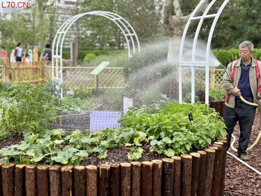有趣的是,蔬菜花园中还设置了一组循环系统。上海植物园科普员谢臻阳介绍,花坛中央的铁丝圆桶能收集枯枝落叶,自然降解成介质肥料,“反哺”给花坛中的蔬菜。据悉,这种自主循环系统在国外花园中很常见,本届花卉节中首次引入主会场。