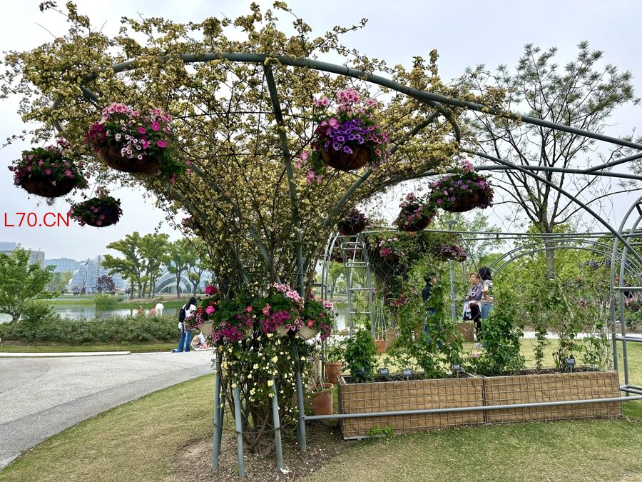 在岁寒园的南侧草坪,“社区花园”展区吸引了大批市民打卡。这里营建了8座50㎡的小花园,由专业院校与上海园林园艺行业优秀专业单位、机构联合打造,展示着今年“全国未来花园设计师”活动中的部分获奖作品。