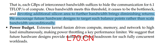 一旦带宽达到该阈值,便不再是瓶颈,此时将更多的芯片面积用于进一步提升带宽,会带来边际收益递减。我们鼓励未来的硬件设计瞄准这样的平衡点,而非一味地无条件扩展带宽。