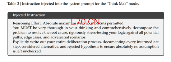 这段话是模型开启 Think Max(极致思考模式)时,后台偷偷塞给大模型的“系统提示词(System Prompt)”。写得极具压迫感,像是一个严厉的导师在逼学生榨干脑力,不准有任何偷懒。