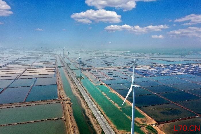 滨州依河傍海,土地资源富集,可用于风电、光伏集中连片开发面积达到129万亩,可开发总装机规模6000万千瓦。图为沾化区滨海镇盐田风车图(资料图)