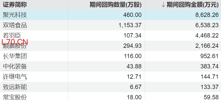 9家上市公司股票获回购RSI超买超卖,聚光科技回购金额最高