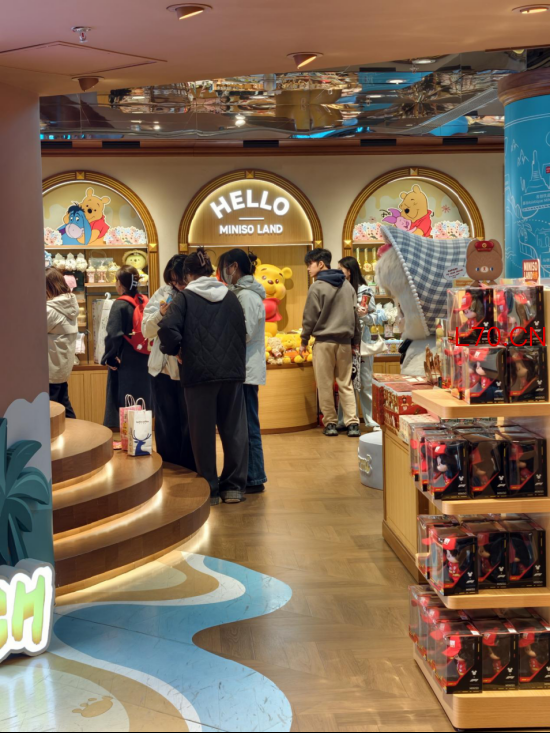 在人流量方面,MINISO LAND门店中拥有旺旺、柯南、海贼王、蜡笔小新、宝可梦等种类繁多的IP联名产品,收银台前一度排起了小队,且同样的三丽鸥联名,这里售价仅约为LUCKY LOOP的一半。