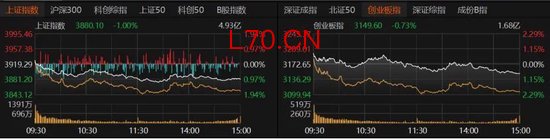 清明节前最后两个交易日,A股持续走低。今日在假期避险情绪主导下,市场缩量下跌,全天表现低迷。指数方面,沪指收跌1%报3880.1点,创业板指收跌0.73%报3149.6点,深证成指收跌0.99%。沪深300、上证50跌幅均不超1%,科创50微跌,北证50跌逾2%。