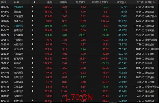 盘面上,光通信模块、光电子器件走强,电子设备制造、电子元件微涨,但电源设备、麒麟电池、燃气、微盘股均大跌。