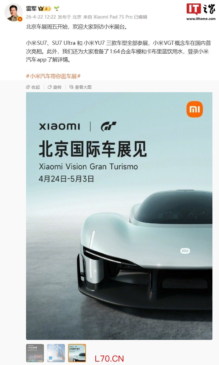 小米:「小米汽车北京国际车展专场发布会」将公布 YU7 相关最新信息