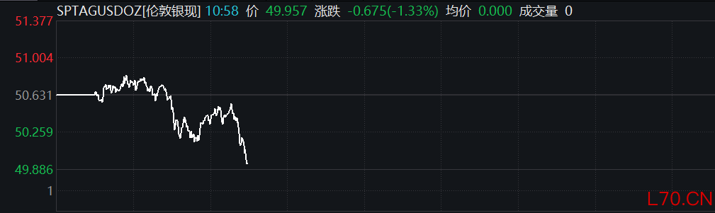 现货白银向下跌破50美元/盎司