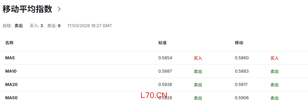 3月17日周二交易时段,新西兰与美国基本面数据清淡,使得汇价处于典型“流动性压缩型震荡”环境,同时纽币汇价整体结构呈现“区间整固-窄幅震荡”特征,但价格走势整体位于0.5800关口上方维持一线支撑,反映买方对待纽币汇率溢价看涨情绪保持相对乐观态度。市场当前正静待基本面关键数据以及事件落地,从而为触发技术面突破信号提供清晰指引。