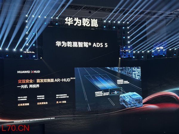 在硬件显示端,华为还首发了LCoS双焦面AR-HUD AR600,其拥有120 PPD分辨率、4.5米黄金视距,离得近看得清;远焦面首创倾斜的焦面设计,130英寸的画幅可以跨三个车道显示,AR体验更好。