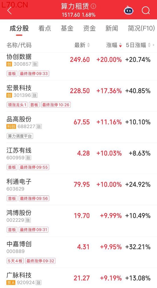 展望后市,东吴证券判断,云涨价周期刚刚开始,各大厂商陆续出现限购甚至涨价,随着token使用量提升,高端算力将愈发紧缺。但同时行业壁垒逐步提升,市场份额向头部供应商集中。宏景科技、协创数据、利通电子、盈峰环境等相关标的或受益。